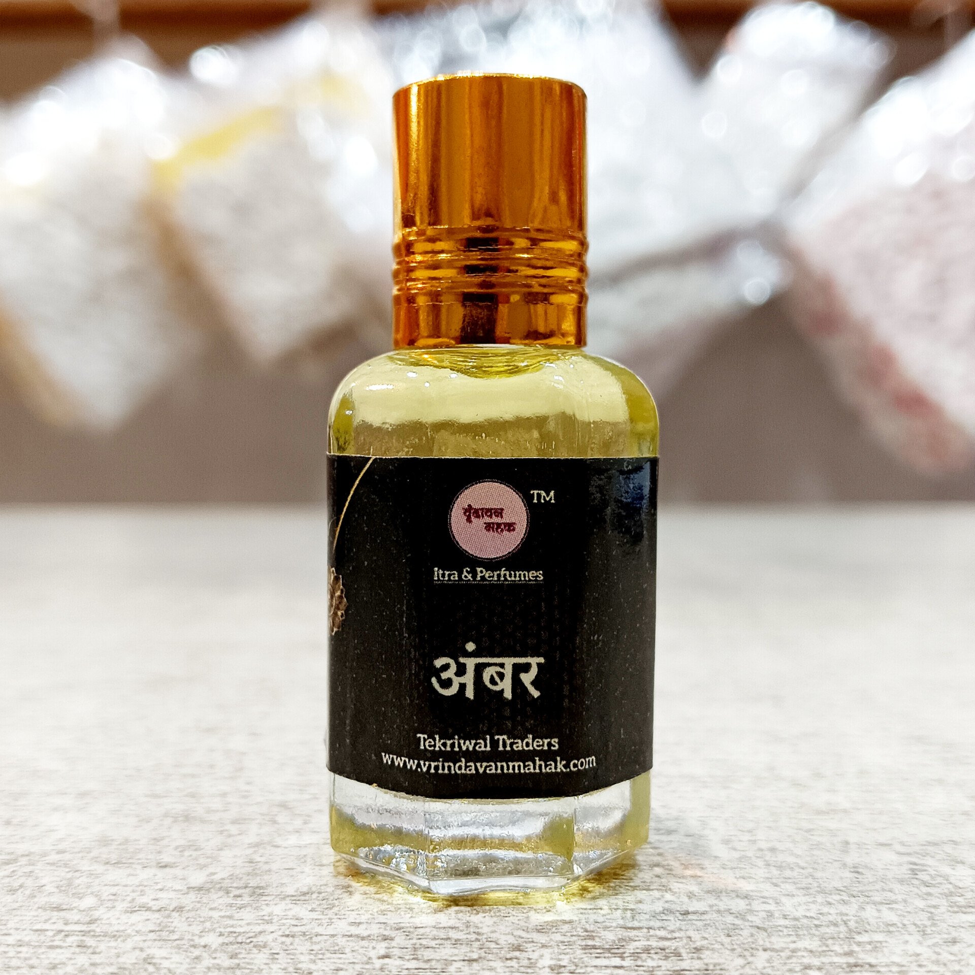 Amber Roll On Attar by Vrindavan Mahak – Long Lasting Pure Fragrance for Daily Wear, Meditation, and Spiritual Practices