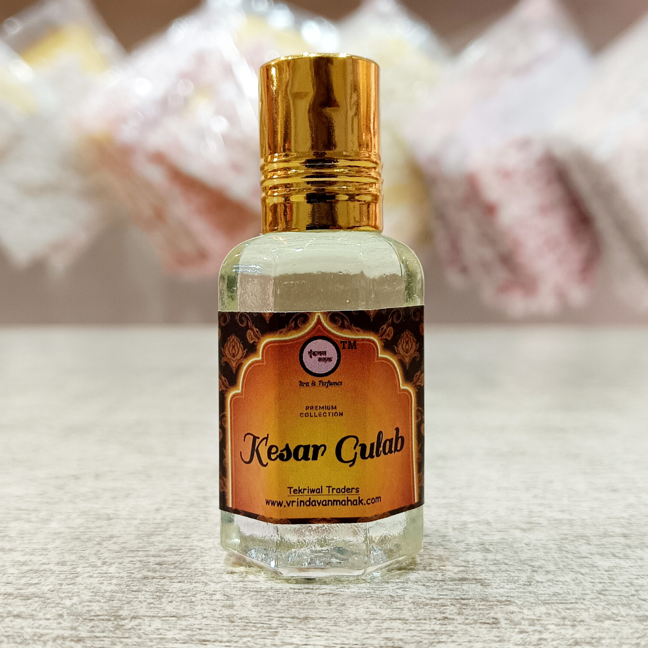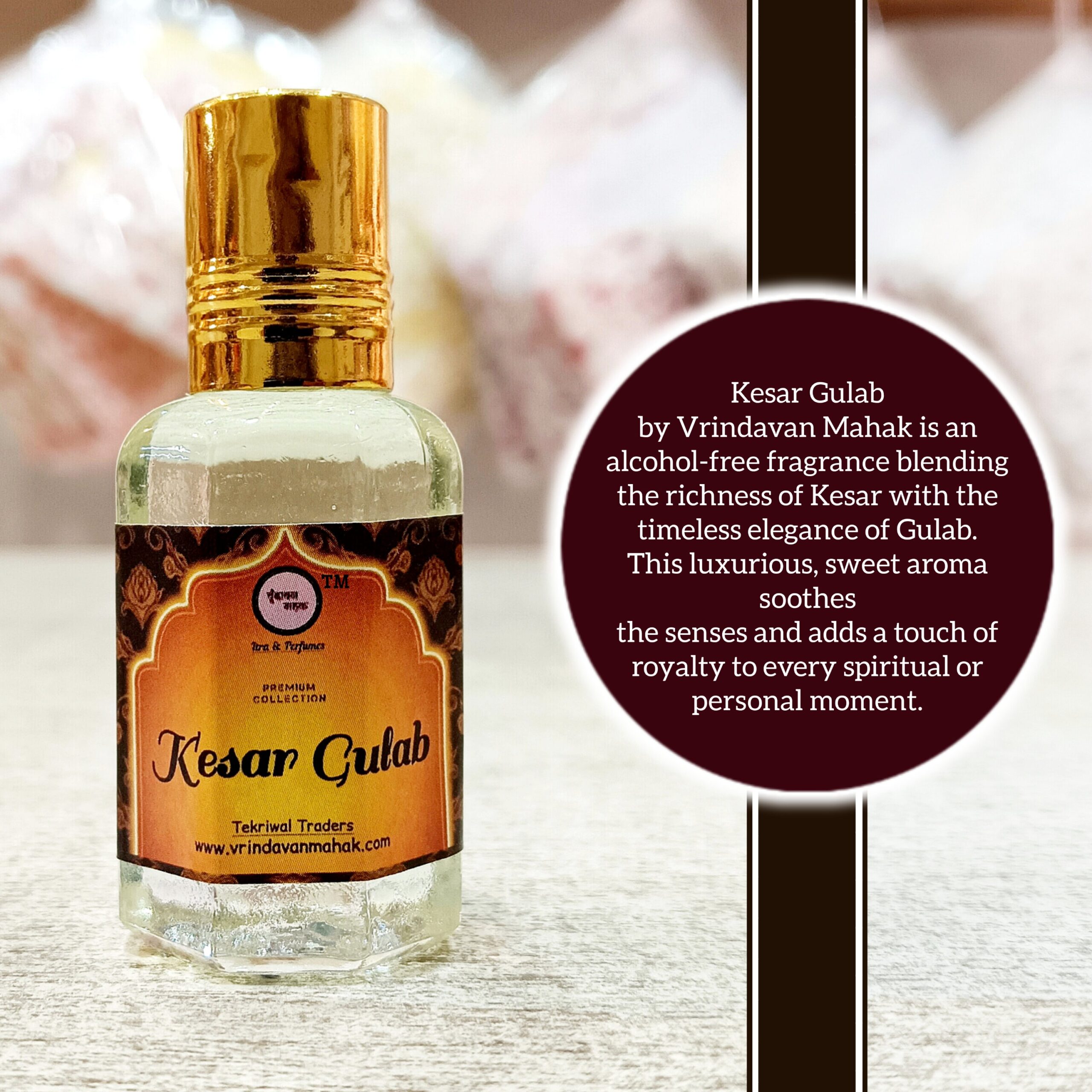 Kesar Gulab Roll On Attar by Vrindavan Mahak offers a sweet, luxurious blend of saffron and rose. A timeless fragrance that adds a touch of elegance and charm to your day.