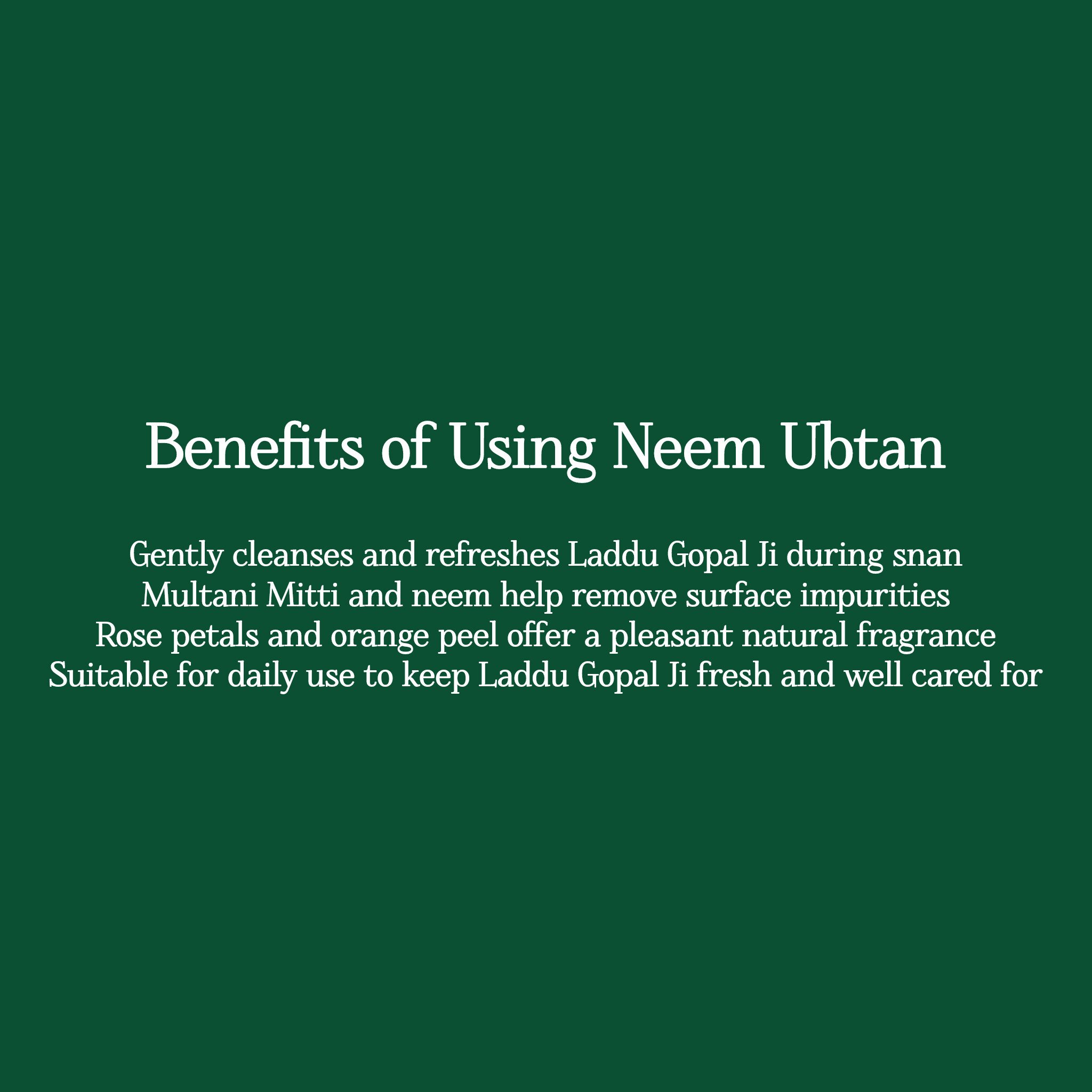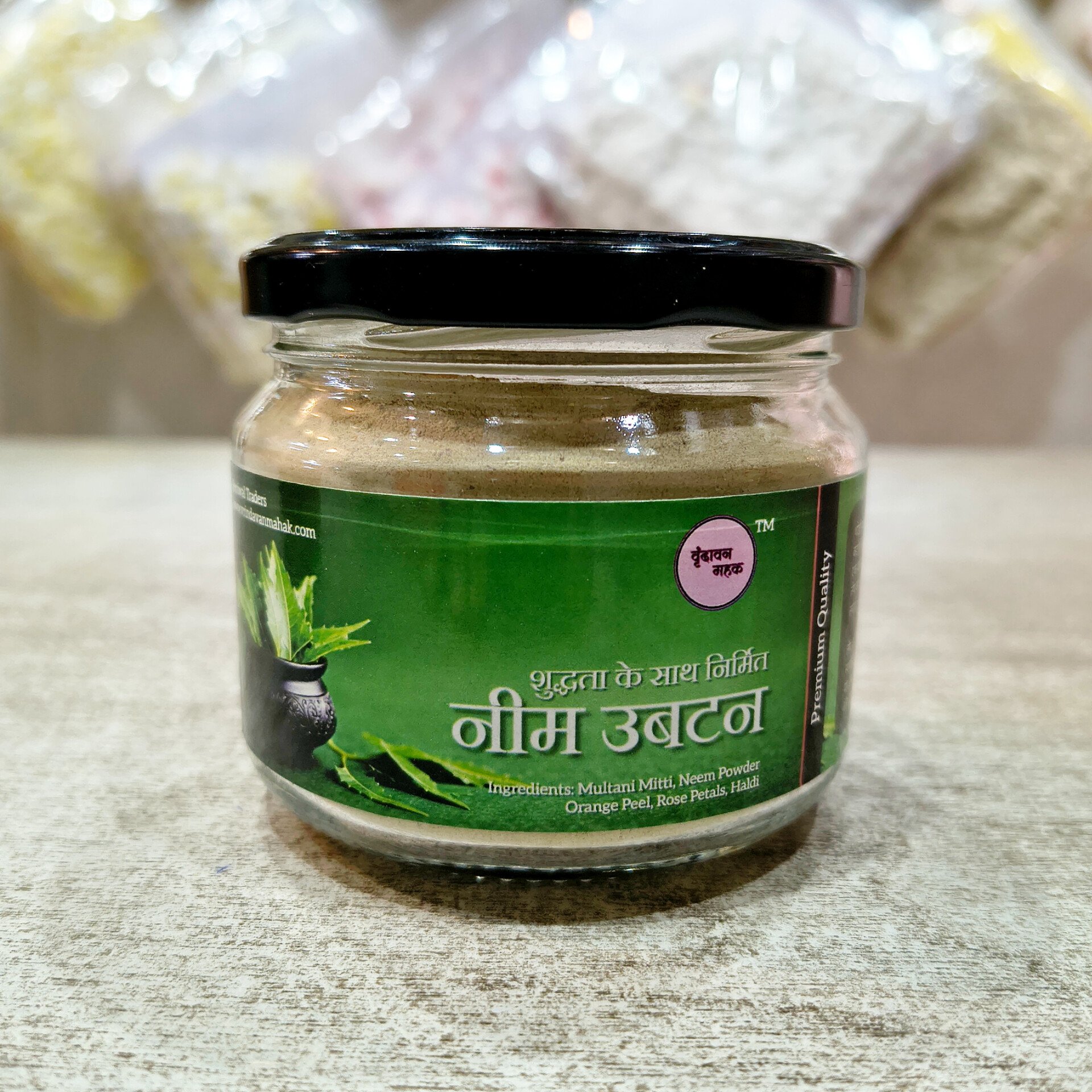 Vrindavan Mahak brings Neem Ubtan, a traditional herbal preparation crafted with devotion. Made from pure neem leaves, it is completely chemical-free, offering cleansing purity and natural freshness. Rooted in ayurvedic wisdom, this ubtan reflects the sacred essence of Vrindavan, delivering authentic care, protection, and spiritual connection in every application.