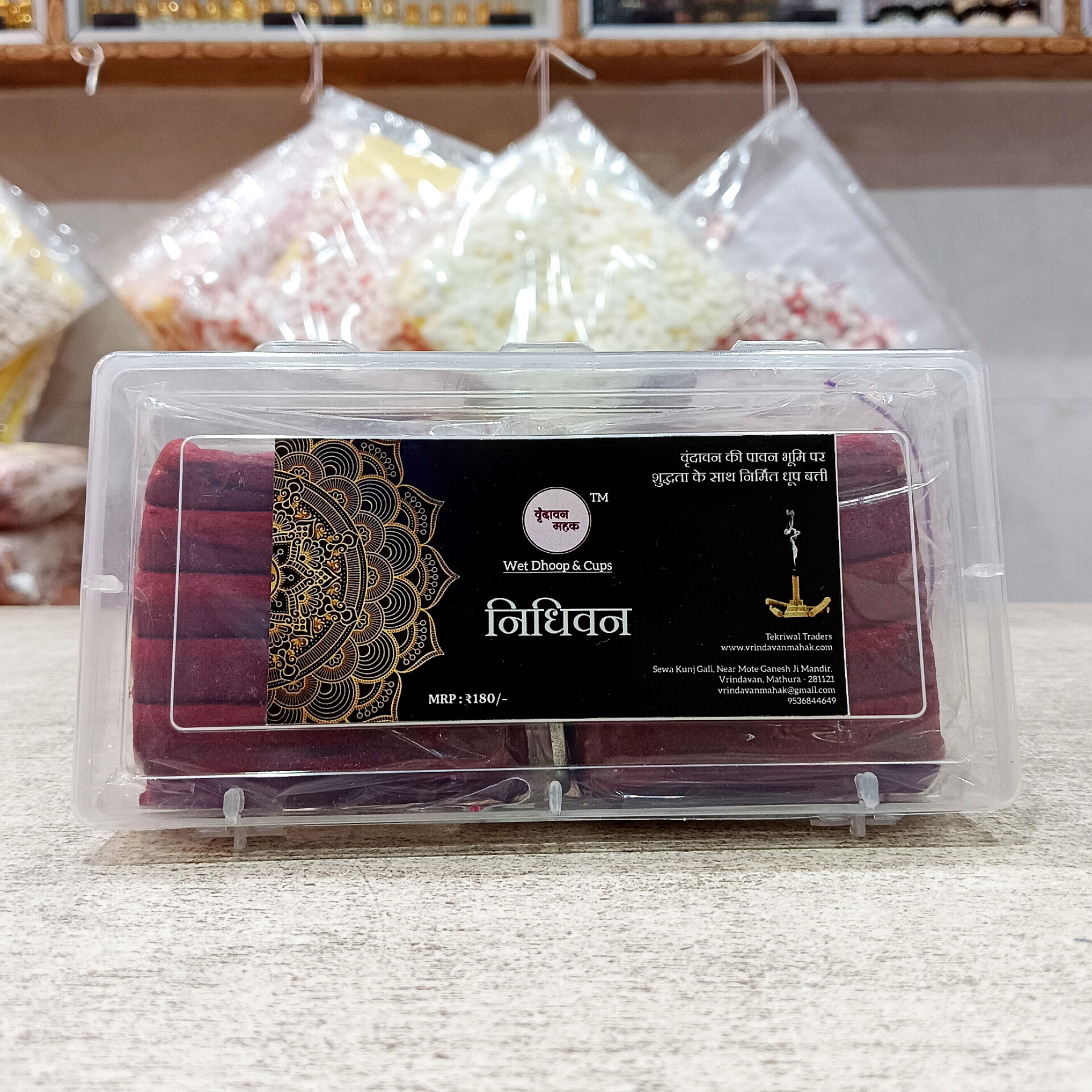 Nidhivan Wet Dhoop brings the mystical aura of Vrindavan’s sacred grove, filling your space with divine energy and depth.