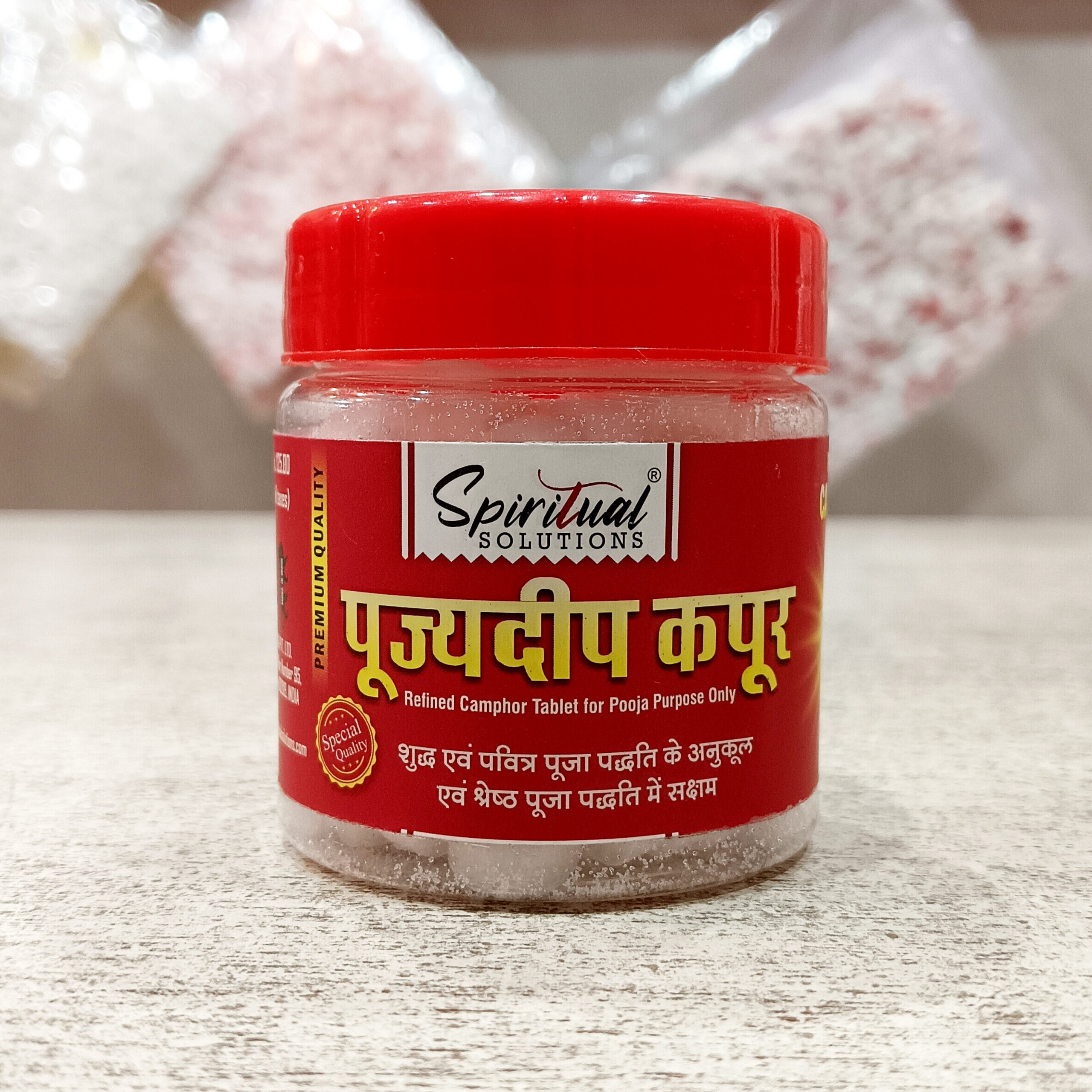 Pure, natural camphor (Kapoor) by Spiritual Solutions – 50 gm pack. Ideal for spiritual rituals, air purification, and Ayurvedic use. Made from 100% natural ingredients.