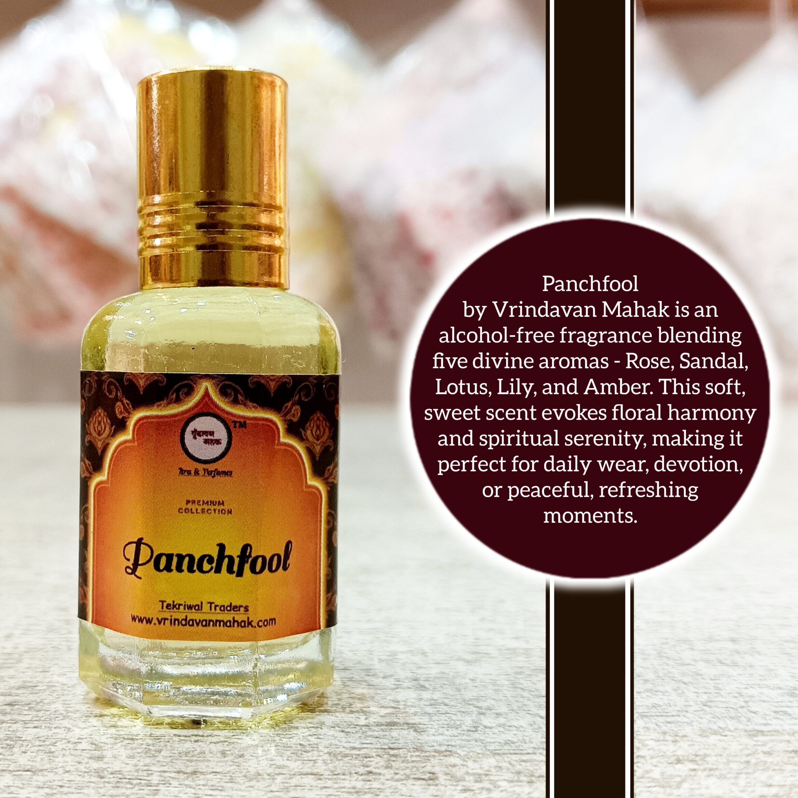 Panchfool Roll On Attar By Vrindavan Mahak | Soft Sweet Floral Scent | Alcohol Free | Long Lasting