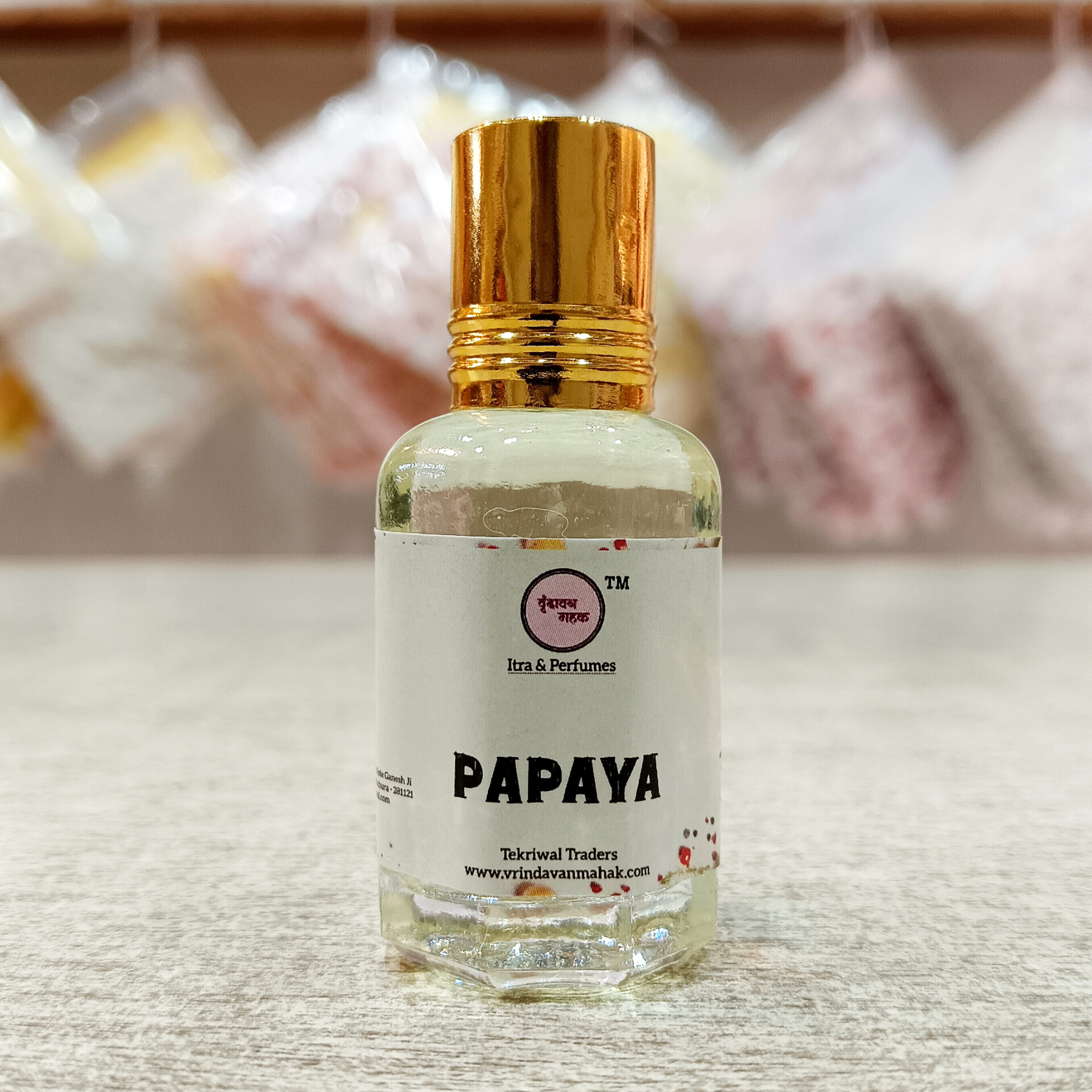 Vrindavan Mahak Papaya Roll On Attar offers a tropical, fruity fragrance in a 12ml roll-on. Perfect for daily use, festive occasions, or spiritual moments with its sweet and refreshing aroma.