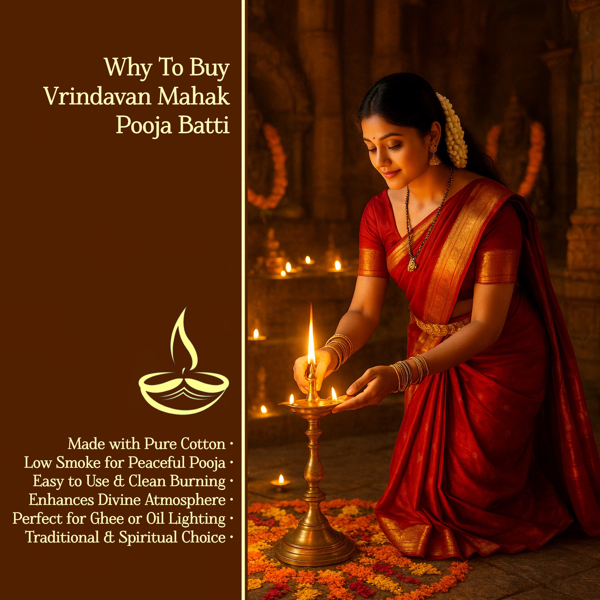 Illuminate your spiritual rituals with our premium Diya Batti, crafted from 100% pure cotton. Perfect for Aarti and other sacred ceremonies, these wicks burn evenly, producing a steady, bright flame that enhances devotion and serenity. Ideal for temples, homes, and festive occasions, they bring warmth and purity to every prayer.