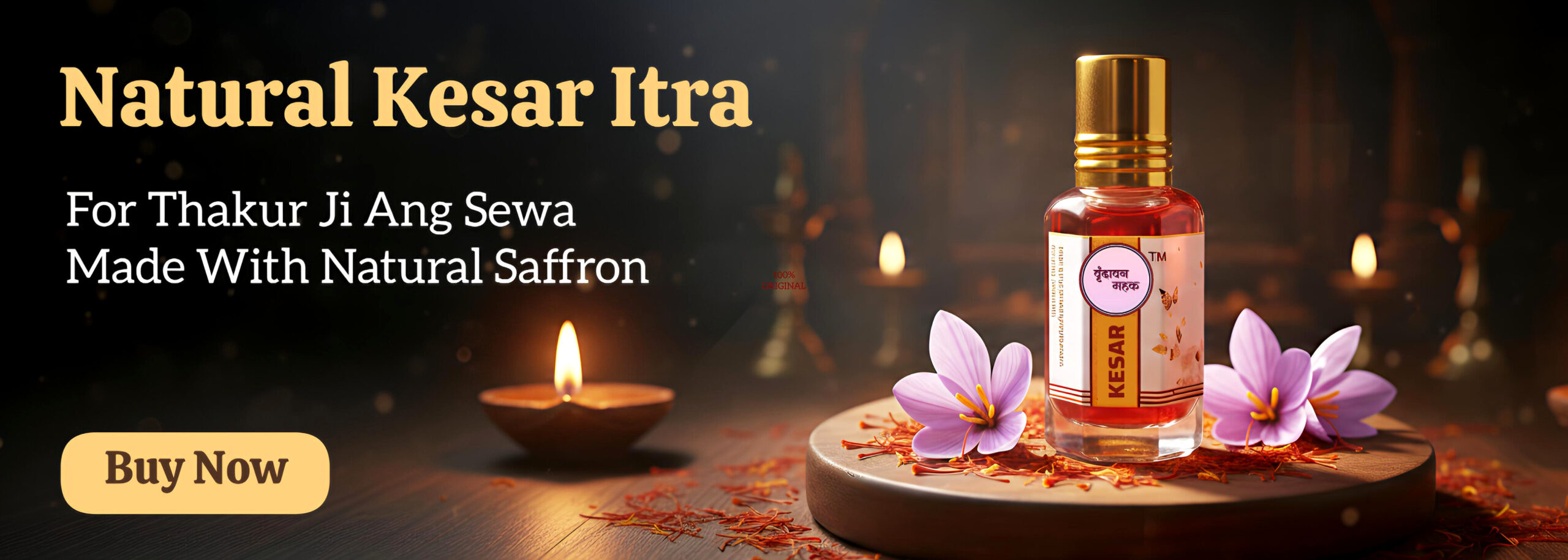 At Vrindavan Mahak, we clearly guide devotees on the correct usage of attars, dividing them mainly into Ang Seva attars and Vastra Seva attars — both premium, alcohol-free, and prepared with seva intention.